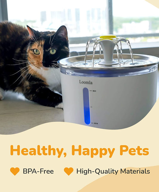 Cat Water Fountain, 85Oz/2.5L Pet Water Fountain Indoor, Automatic Dog Water Dispenser with Switchable LED Lights, 2 Replacement Filters for Cats, Dogs, Pets(Stainless Steel)